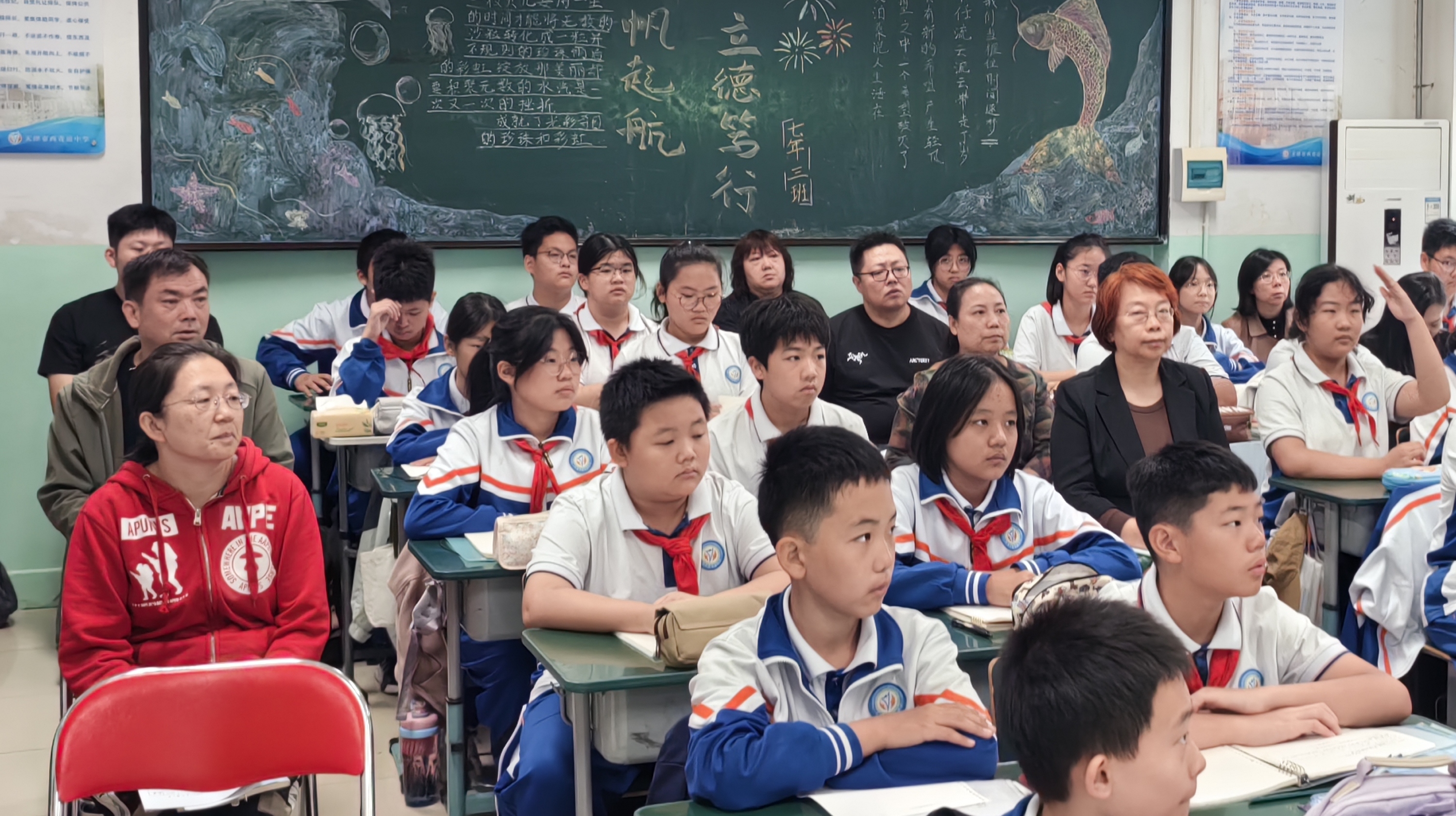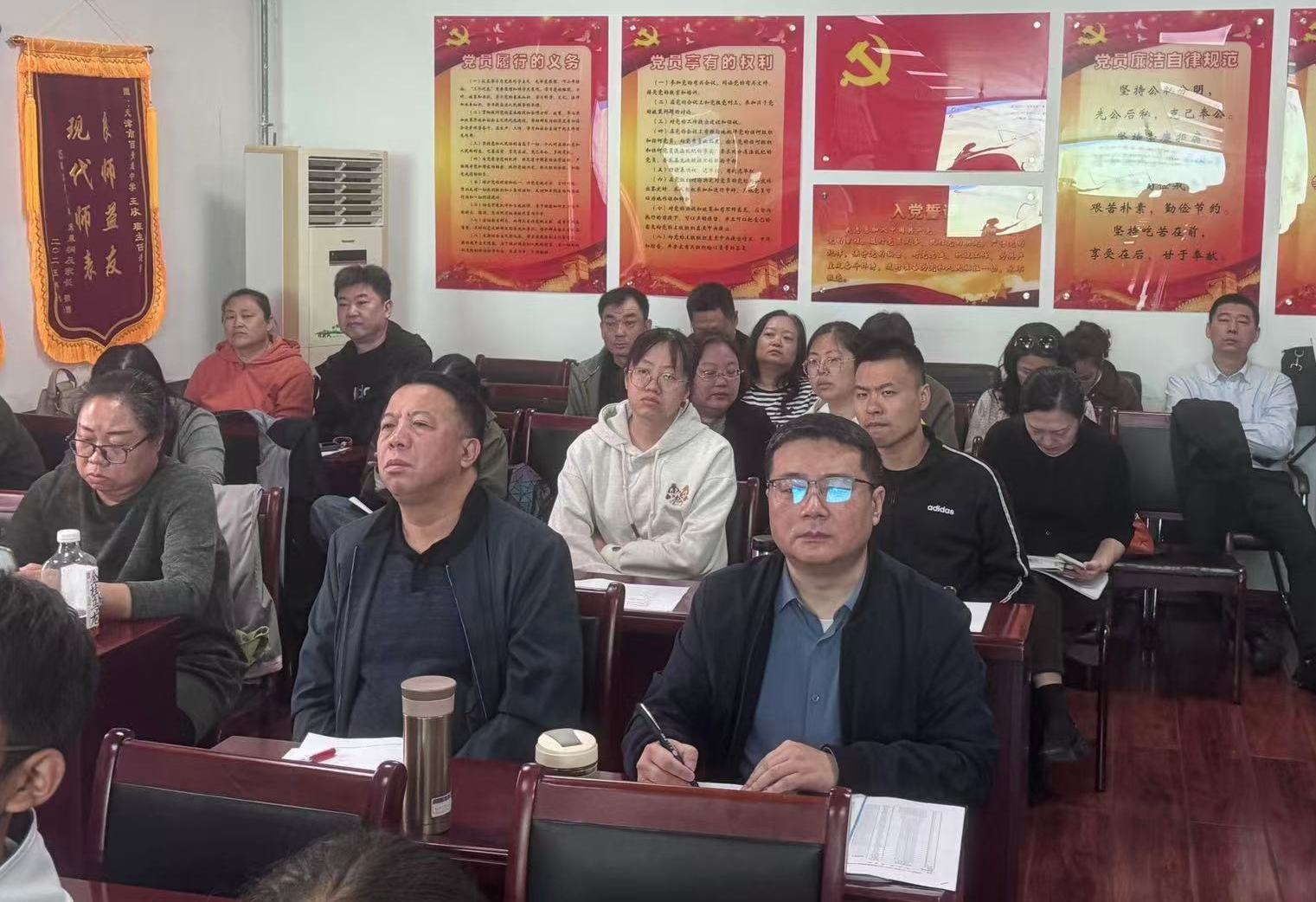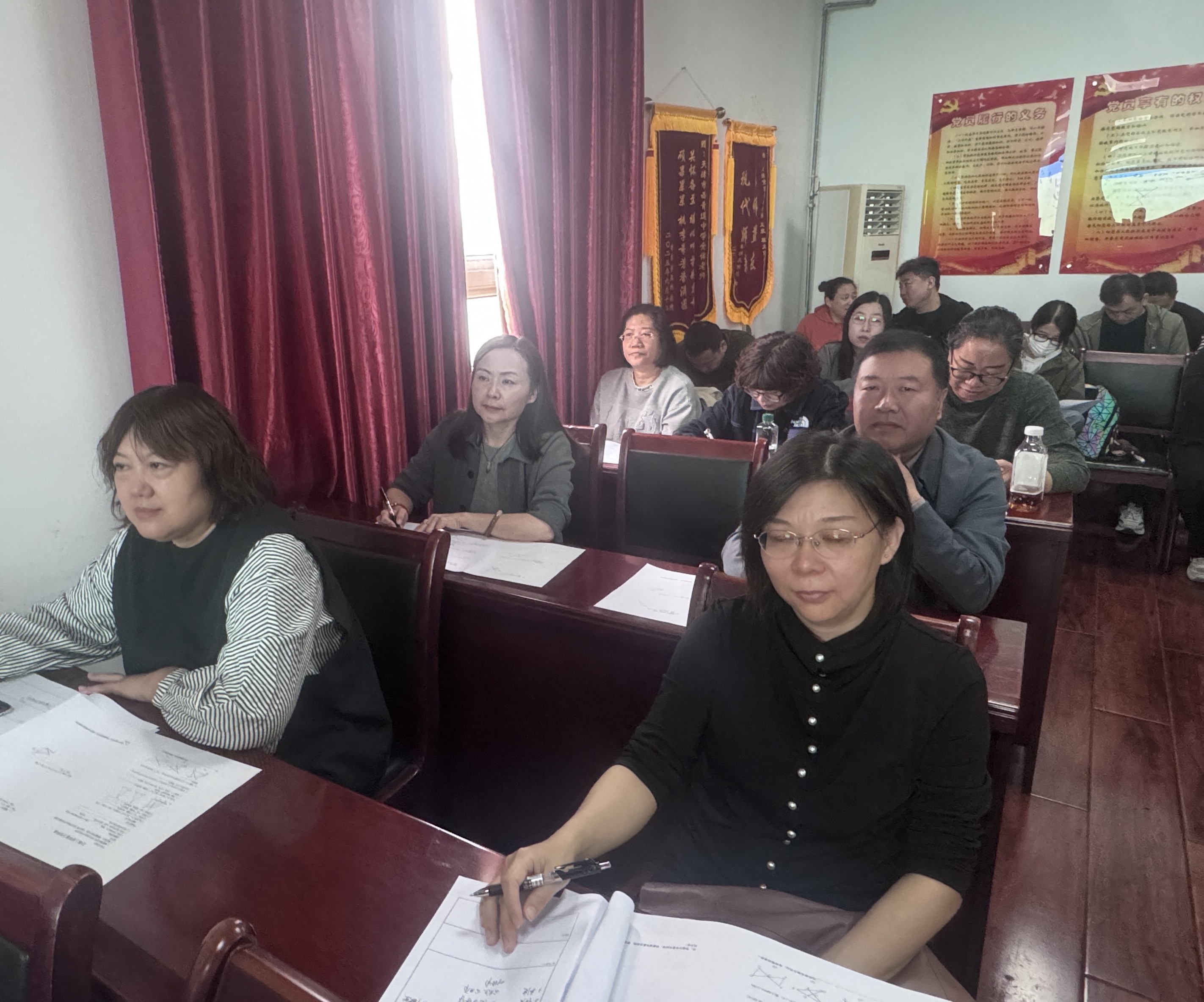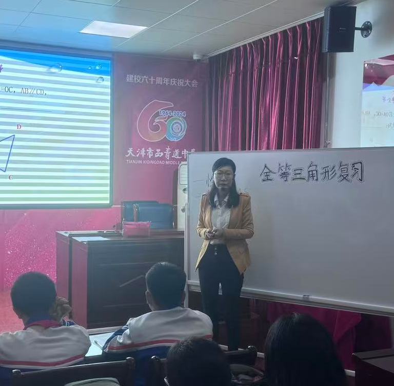 10月16日上午第二节课,红桥区教师发展中心数学教研员王凯歌老师,西青道中学书记马保军、校长吴靖娴、副校长刘卉及合水县挂职校长李建州,与红桥区八年级数学教师一同参加了八年级数学教师刘畅执教的《全等三角形复习》区级研讨课活动。