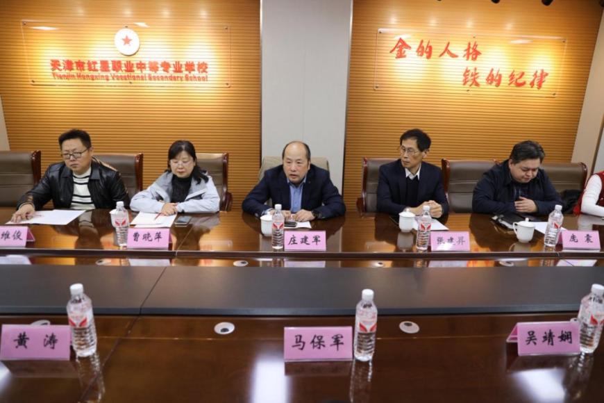 为促进职普教育交流与发展,2025年10月23日下午,天津市西青道中学校领导带领合水、沧州跟岗学习领导、教师前往天津市红星职业中等专业学校),开展津冀陇职普教育调研交流活动。天津市红星职业中等专业学校党委书记张建昇,党委副书记、校长庄建军等校领导,以及西青道中学党总支书记马保军,党总支副书记、校长吴靖娴等相关人员参与活动。