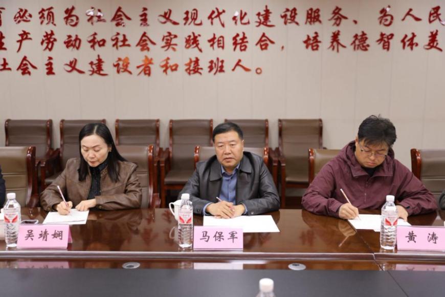 红星职专校长庄建军介绍完学校后,西青道中学党总支书记马保军在发言中对红星职专的热情接待表示感谢,高度赞扬了红星职专在职业教育领域取得的成果,希望能以本次津冀陇调研交流活动为纽带,进一步深化职业学校与普教学校的跨区域合作,实现优势互补,共同探索职普教育融合的新路径。