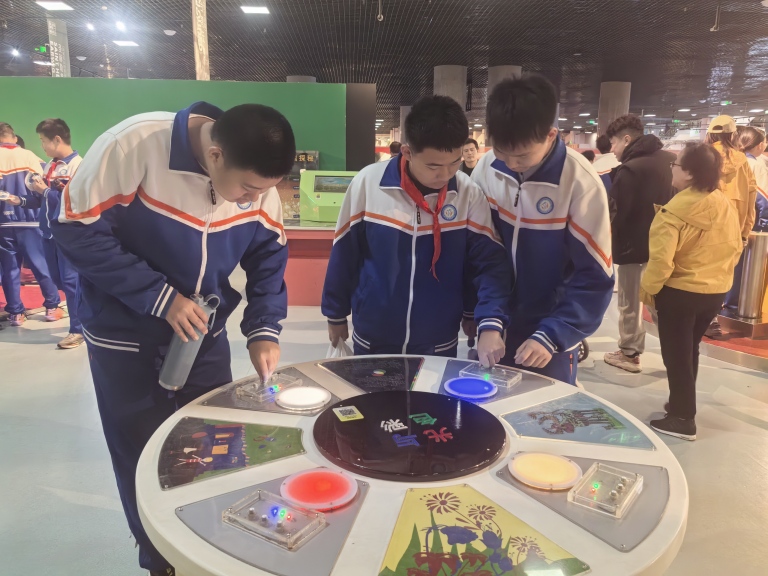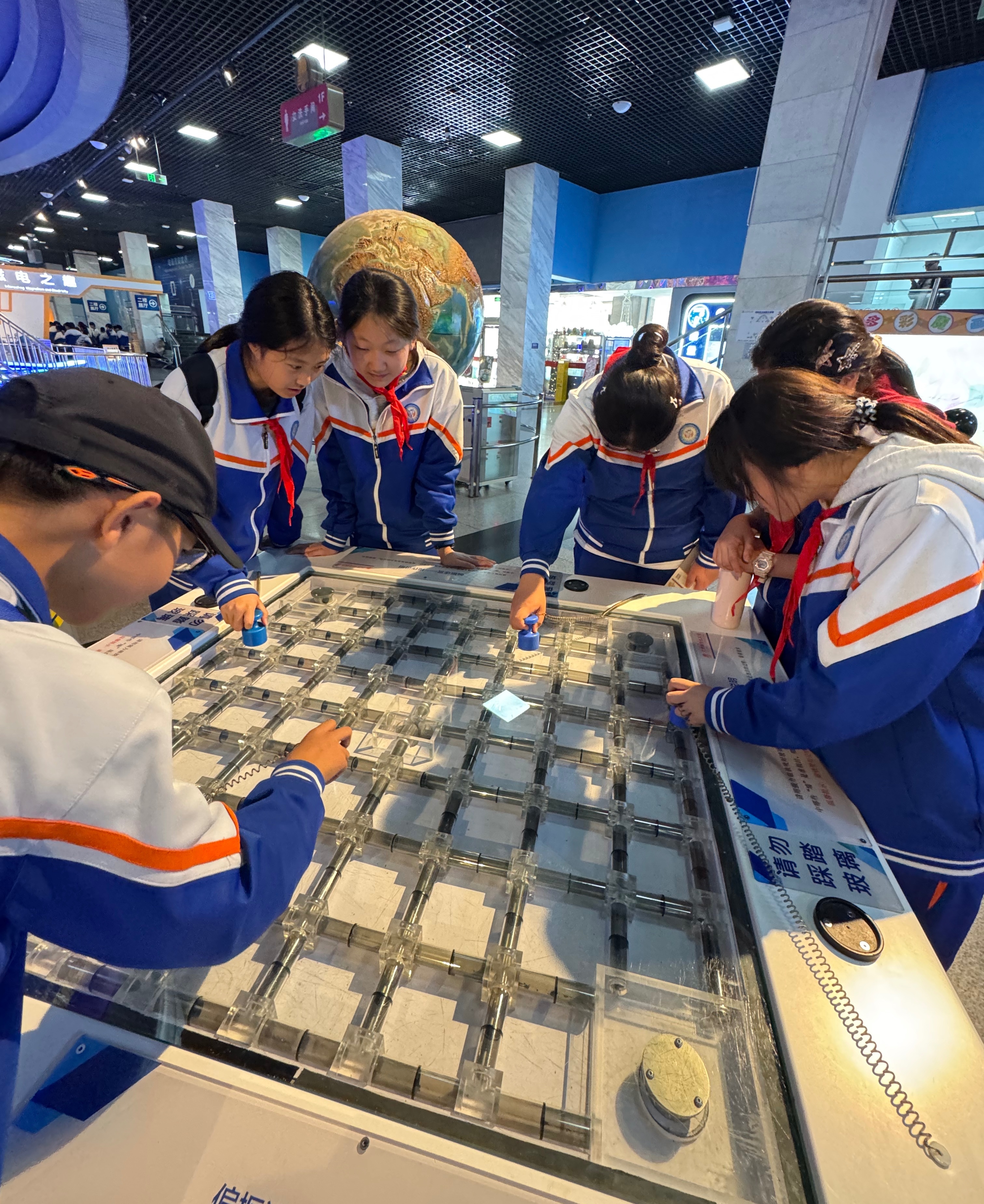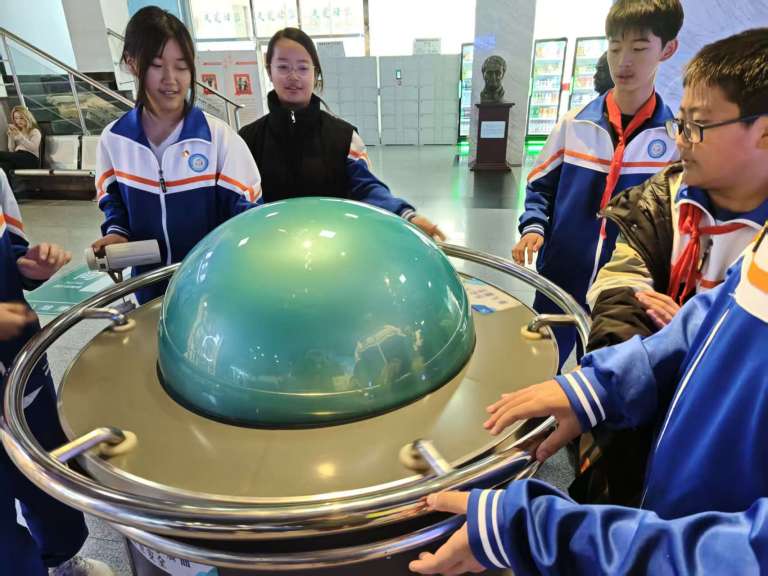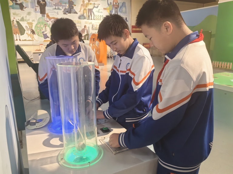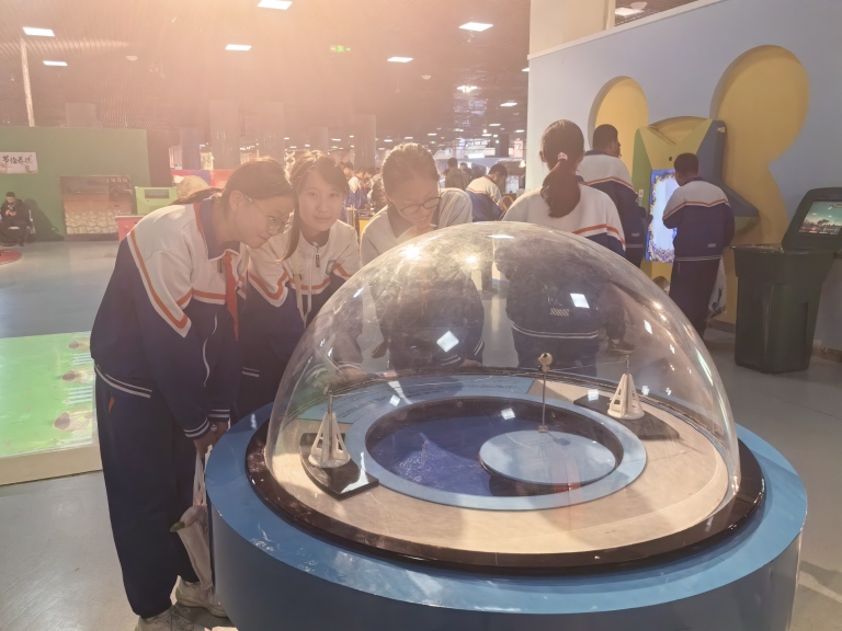 活动当天,在带队教师的有序组织下,学生们乘车抵达天津市科技馆。场馆工作人员与学校教师分工协作,带领学生开启探索之旅。