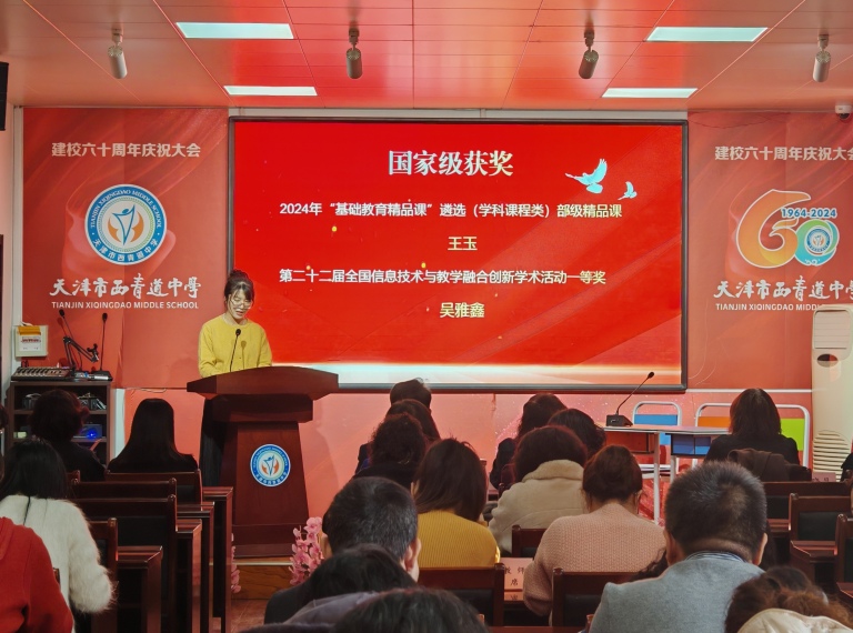 在教科研成果展示环节,一系列亮眼成绩彰显了学校教科研工作的丰硕成果。其中,王玉老师的课例荣获2024年教育部“基础教育精品课”,吴雅鑫老师斩获全国初中信息技术与教学融合案例一等奖,王静、杨玉娟等多名教师的作品在市级教育创新论文评选中获奖。此外,教师们在区级优质课竞赛、校级微课题研究等领域也屡获佳绩。每一项成果都凝聚着教职工的潜心钻研与不懈付出,赢得现场阵阵掌声。