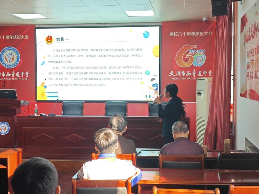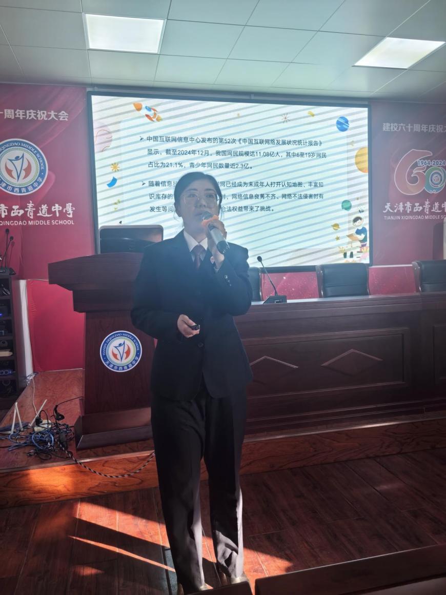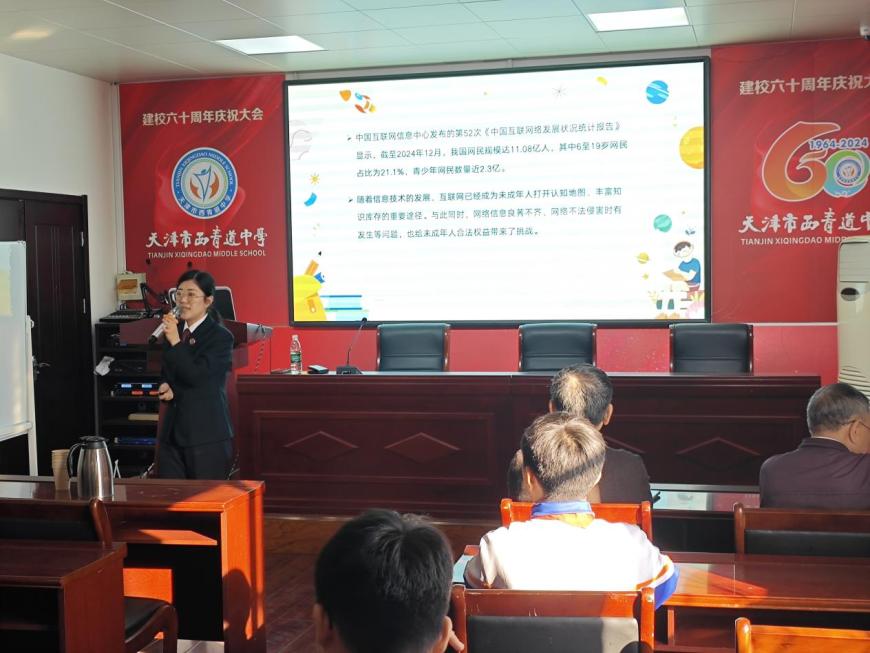 为增强青少年法律意识、网络安全意识,提升其网络自我保护能力。近日,天津市西青道中学特别邀请天津市红桥区人民检察院检察官尹梦琪以“青少年如何安全健康上网”为主题开展普法宣传讲座。红桥区关工委法治部部长徐顺利、副部长孙育章到场参与活动,与师生共同聆听这场生动的法治教育课。