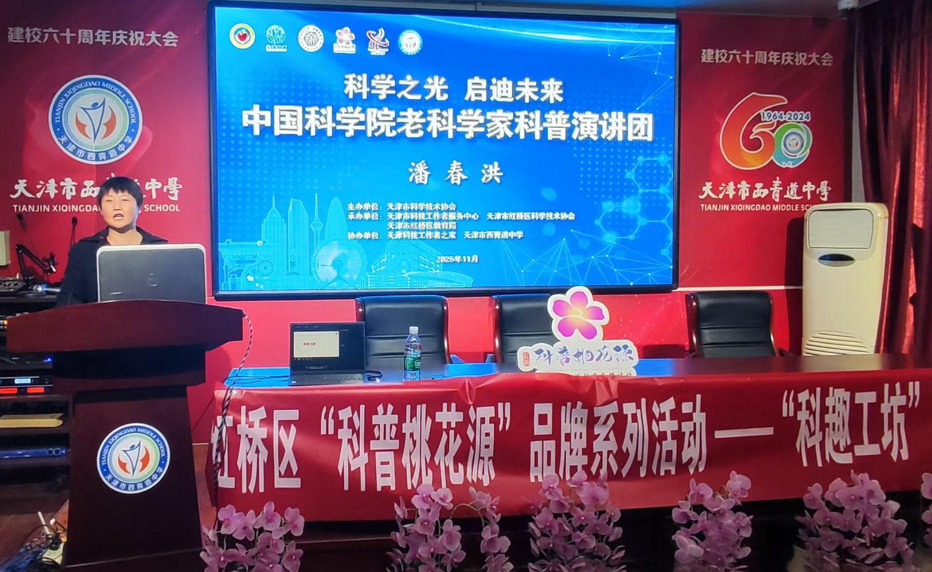 2025年11月28日,由天津市科学技术协会主办,天津市科技工作者服务中心、红桥区科学技术协会、红桥区教育局承办,天津科技工作者之家、西青道中学协办的“科学之光 启迪未来”科普活动在西青道中学举行。中国科学院科学家科普演讲团成员、自动化研究所潘春洪教授走进校园,为师生带来一场精彩的科普盛宴。
