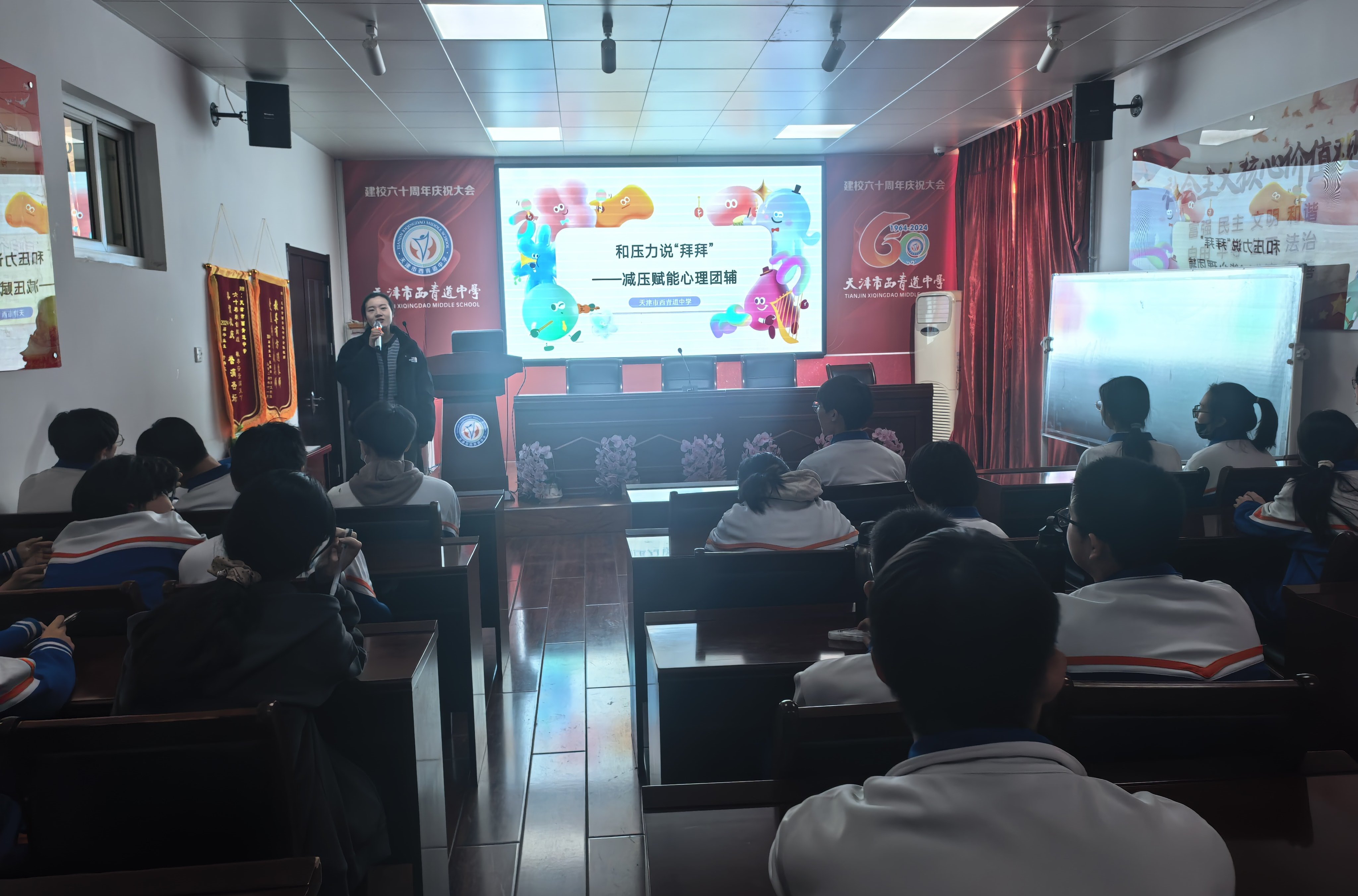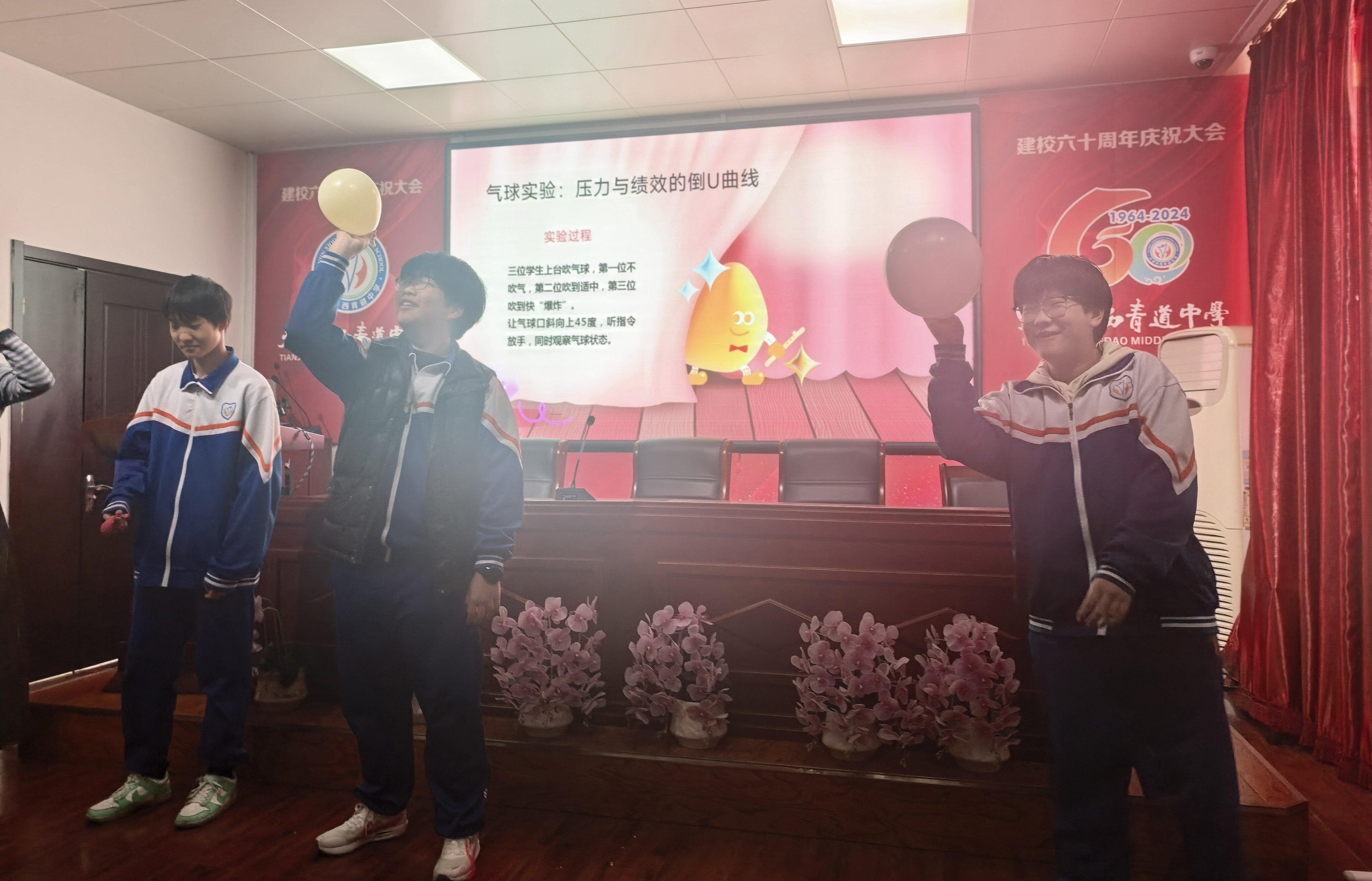 为引导同学们正确认知压力,活动设置了“压力双面镜”气球小实验。通过充气过程中气球的变化,同学们直观理解了“压力并非全是坏事”的道理:适度的压力能激发潜能、推动进步,过度压力则会带来负担。