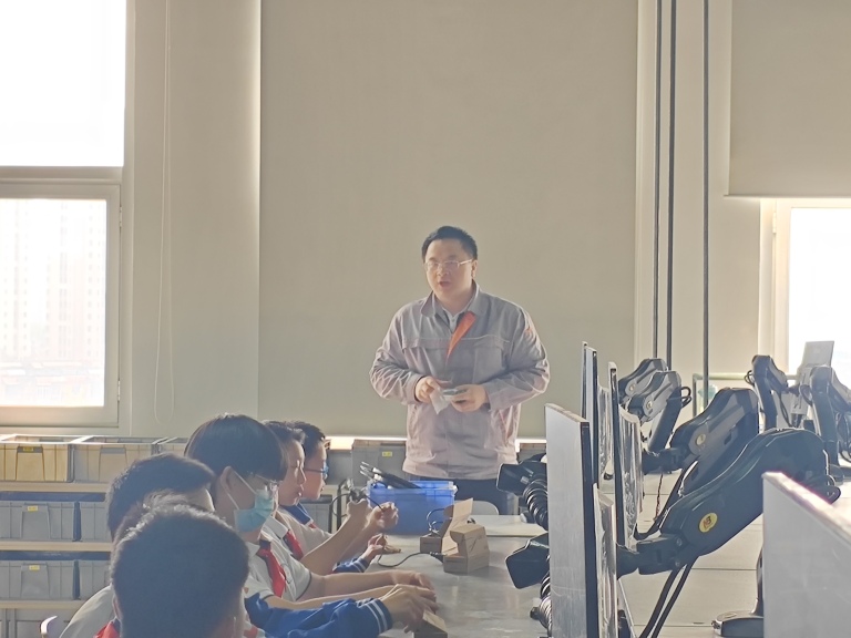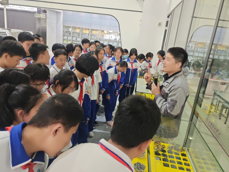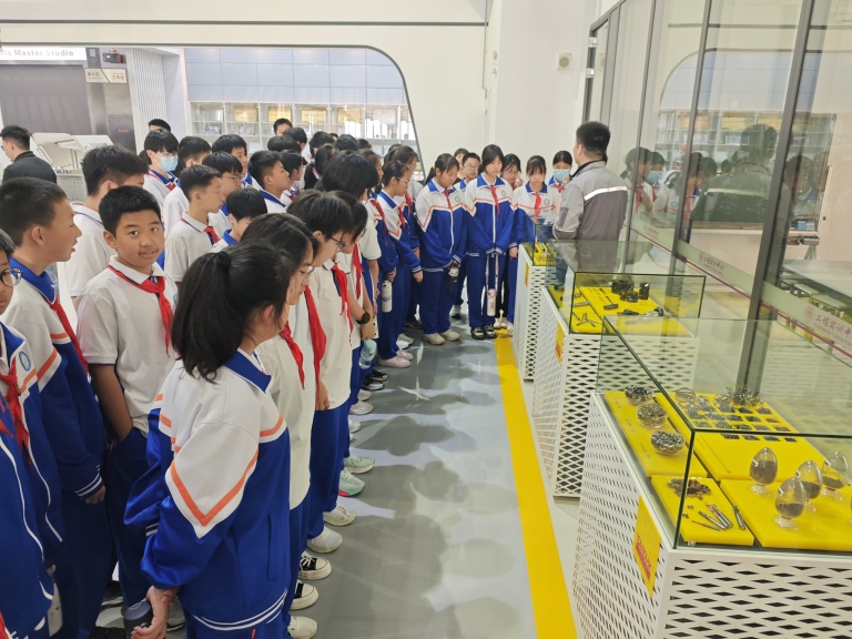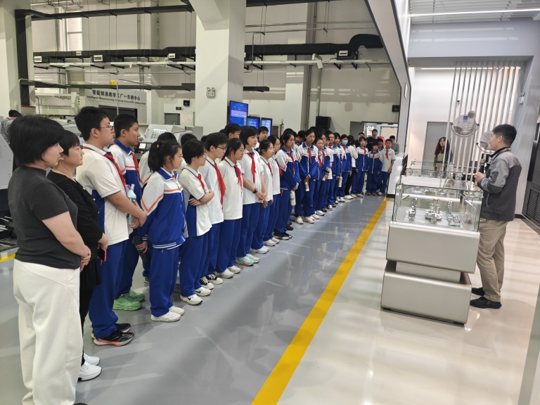 实践环节结束后,师生们参观了现代化的生产实训车间。在车间里,同学们近距离观察了数控机床、3D打印机、工业机器人等先进设备的运行过程,了解了从产品设计、零部件加工到组装调试的完整生产流程。实训中心的老师结合具体设备,向同学们讲解了智能制造技术在现代工业中的应用,以及未来制造业对高素质技术技能人才的需求。同学们一边认真聆听讲解,一边仔细记录,不时就自己感兴趣的问题向老师提问,现场学习氛围浓厚。