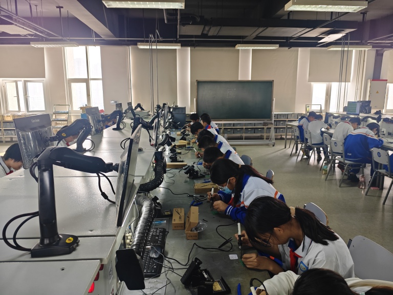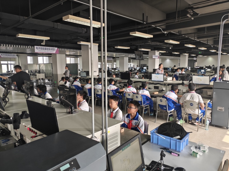 活动伊始,实训中心的老师们对师生们的到来表示热烈欢迎,并详细介绍了中心的发展历程、功能定位以及在职业技术人才培养方面取得的丰硕成果。随后,同学们在专业教师的带领下,分组开启了沉浸式的科技体验之旅。
